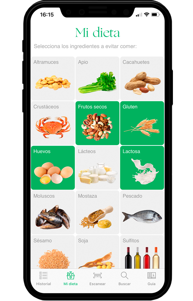 - Escaneando el código de barras de los productos detecta al instante si es apto o no para el consumo según el perfil del usuario