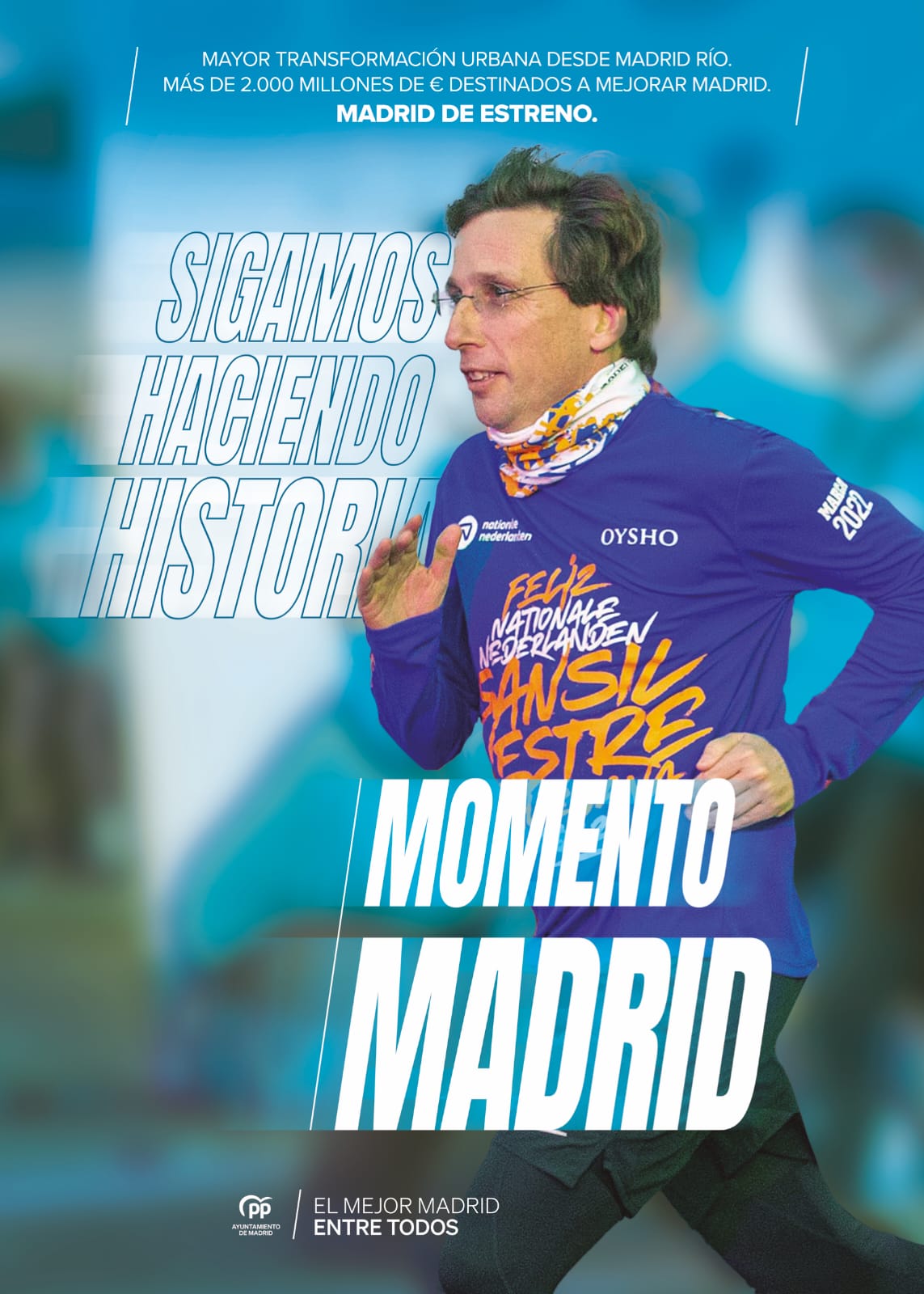 La campaña hace hincapié en que es el momento de una ciudad moderna, vanguardista y sostenible ambiental, económica y socialmente. Un Madrid que por primera vez ha logrado cumplir con la directiva europea sobre la calidad del aire, normativa que se incumplía reiteradamente desde su entrada en vigor en 2010, en la que se han plantado más de 215.000 árboles y que ha recibido por tercer año consecutivo el reconocimiento de Ciudad Arbórea del Mundo de la ONU. Una ciudad que apuesta por el transporte público con la inversión de 1.000 millones de euros en el Plan Estratégico de la EMT y que ha llevado Bicimad a todos los distritos. Todo ello, al mismo tiempo que ha bajado más de 600 millones de euros en impuestos a todos los madrileños, ha superado por primera vez los 1.000 millones de euros en gasto social y ha puesto en marcha la nueva tarjeta familias que beneficia a casi 65.000 personas.