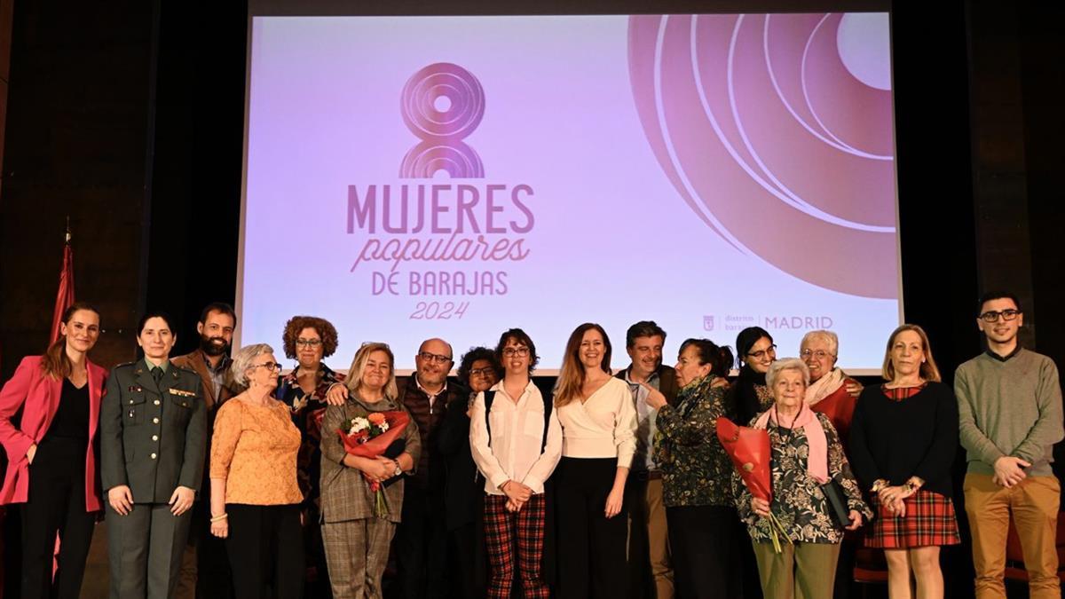 Coincidiendo con el 8 de marzo, Día Internacional de la Mujer, la Junta Municipal de Barajas ha celebrado el homenaje ‘Ocho mujeres populares de Barajas, un reconocimiento público a ocho mujeres que, con su trabajo y dedicación, han contribuido a mejorar el distrito. El acto, celebrado en el salón de actos del Colegio Alameda de Osuna, ha contado con la participación del delegado de Políticas Sociales, Familia e Igualdad, José Fernández, y el concejal de Barajas, Juan Peña.