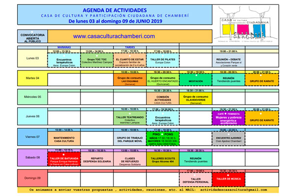 Por otro lado, la Casa de la Cultura anima a los ciudadanos a enviar propuestas con actividades o reuniones, entre otras. Para ello, deberán enviar un email a la dirección de correo actividadescasacultura@gmail.com.