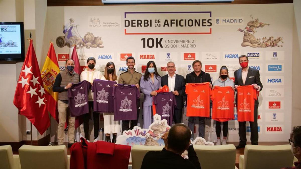Una curiosa y tradicional carrera tomará las calles de la ciudad este domingo, 7 de noviembre. Se trata del Derbi de las Aficiones, en el que cerca de 7.000 aficionados del Real Madrid y del Atlético de Madrid medirán sus dotes como velocistas. La vicealcaldesa, Begoña Villacís, y la concejala delegada de Deporte, Sofía Miranda, han participado este mediodía en la presentación de la XI edición de esta prueba, que regresa a la capital tras suspenderse la edición de 2020 a causa de la pandemia.