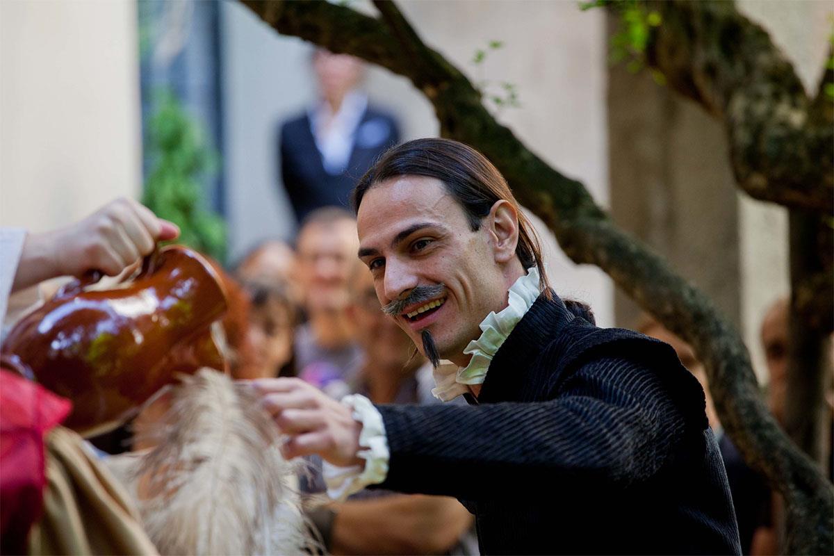 ¿Te imaginas cómo hubiese sido un encuentro entre Lope de Vega y William Shakespeare? La compañía Lear Producciones les da voz en el Teatreo titulado ‘In Verona veritas’, concebido en 2014 con ocasión del 450 aniversario del nacimiento del autor inglés. Un espectáculo ambientado en una taberna donde ambos autores comparten sus penas y glorias. En ese animado entorno conversan sobre la tragedia de los amantes de Verona, una historia medieval que, curiosamente, les inspiró a ambos. Lope transformó el cuento en su Castelvines y Monteses y Shakespeare en su bien conocida Romeo y Julieta.