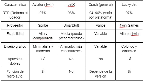 Comparación entre Aviator y otras variantes de juego tipo “crash”
