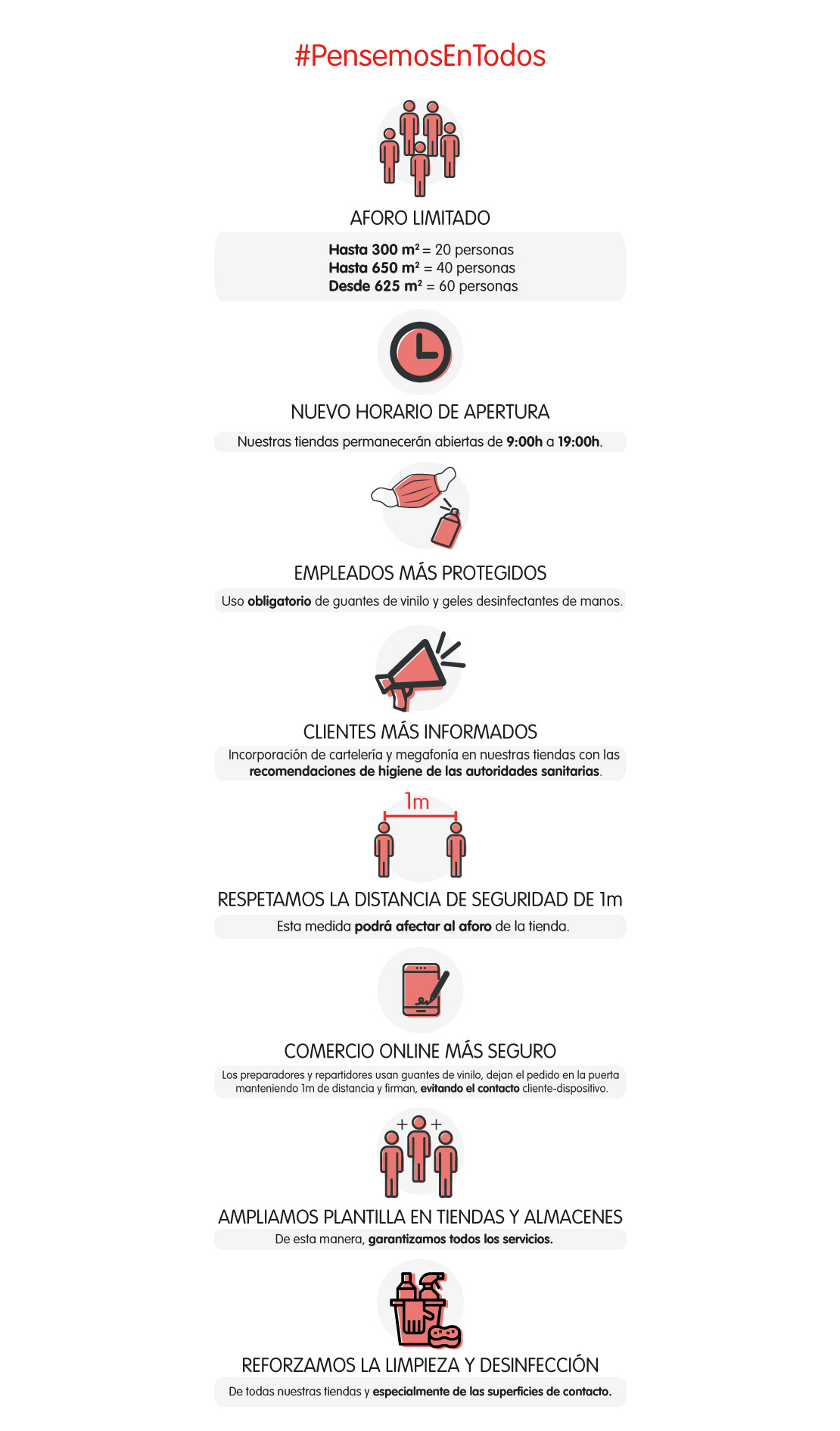 Además, según relatan desde la compañía, “la seguridad es lo más importante”, por lo que han extremado las medidas de seguridad e higiene tanto en tienda física como en la preparación y envío de tu pedido online, como explican en la infografía de más abajo.