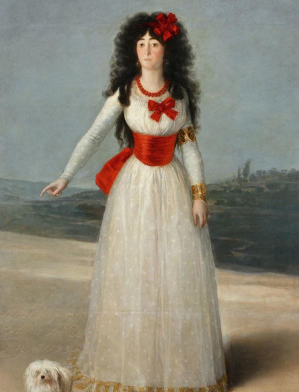 Por otro lado, la esencia de Zurbarán influiría en Balenciaga. El famoso pintor destacaba por la representación de los tejidos y el movimiento de la tela en sus cuadros, que se reflejaría en los pliegues y texturas elegidos por Balenciaga. Por supuesto, otra sección está dedicada a Francisco de Goya, como no podía ser de otra forma. Balenciaga quiso reflejar la estética de España a través de sus pintores, tanto por los vestidos como por el manejo del color y tonalidades. Un emparejamiento destacado es la de uno de sus vestidos con el que la duquesa de Alba es representada por Goya.
