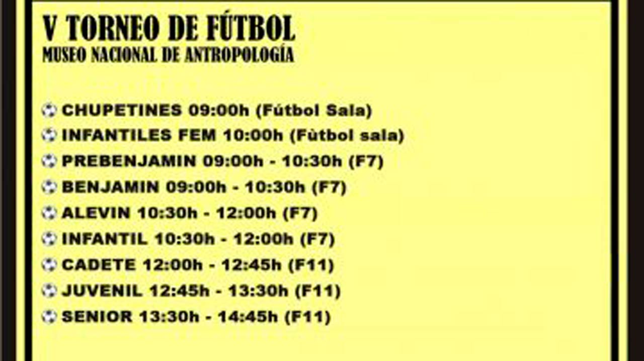 El próximo 1 de octubre, 23 equipos de fútbol de todas las categorías se reunirán en las pistas del Centro Deportivo Municipal La Chopera, situado en el parque de El Retiro, para celebrar el V Torneo de Fútbol del Museo Nacional de Antropología (MNA).