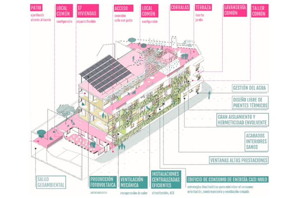 Plan de vivienda ecológica y colaborativa en Las Carolinas/ Construible.