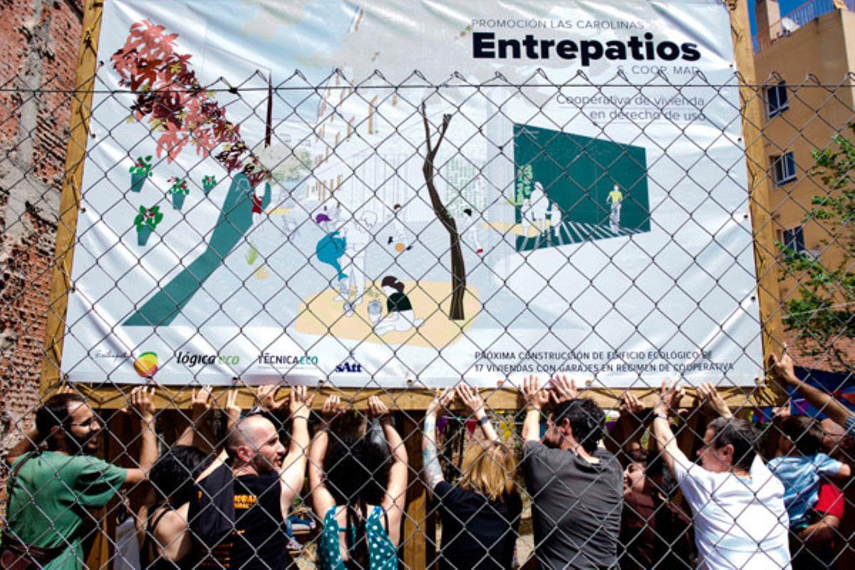 El proyecto de la cooperativa Entrepatios fue, inicialmente, descrito en un papel a base de planos esbozados fruto de las conversaciones y de los sueños por cumplir de los que serían los futuros vecinos. Sin embargo, a día de hoy, ese boceto se ha convertido en una realidad. La historia de esta iniciativa nos traslada hasta la zona popularmente conocida como Las Carolinas. Allí han comenzado a erguirse las 17 viviendas que conformarán el ‘cohousing’ verde de Usera. La propiedad del edificio es de la cooperativa que la promueve y sus miembros pagan por usar las casas y los espacios comunes como forma de lucha contra la 'especulación inmobiliaria'.