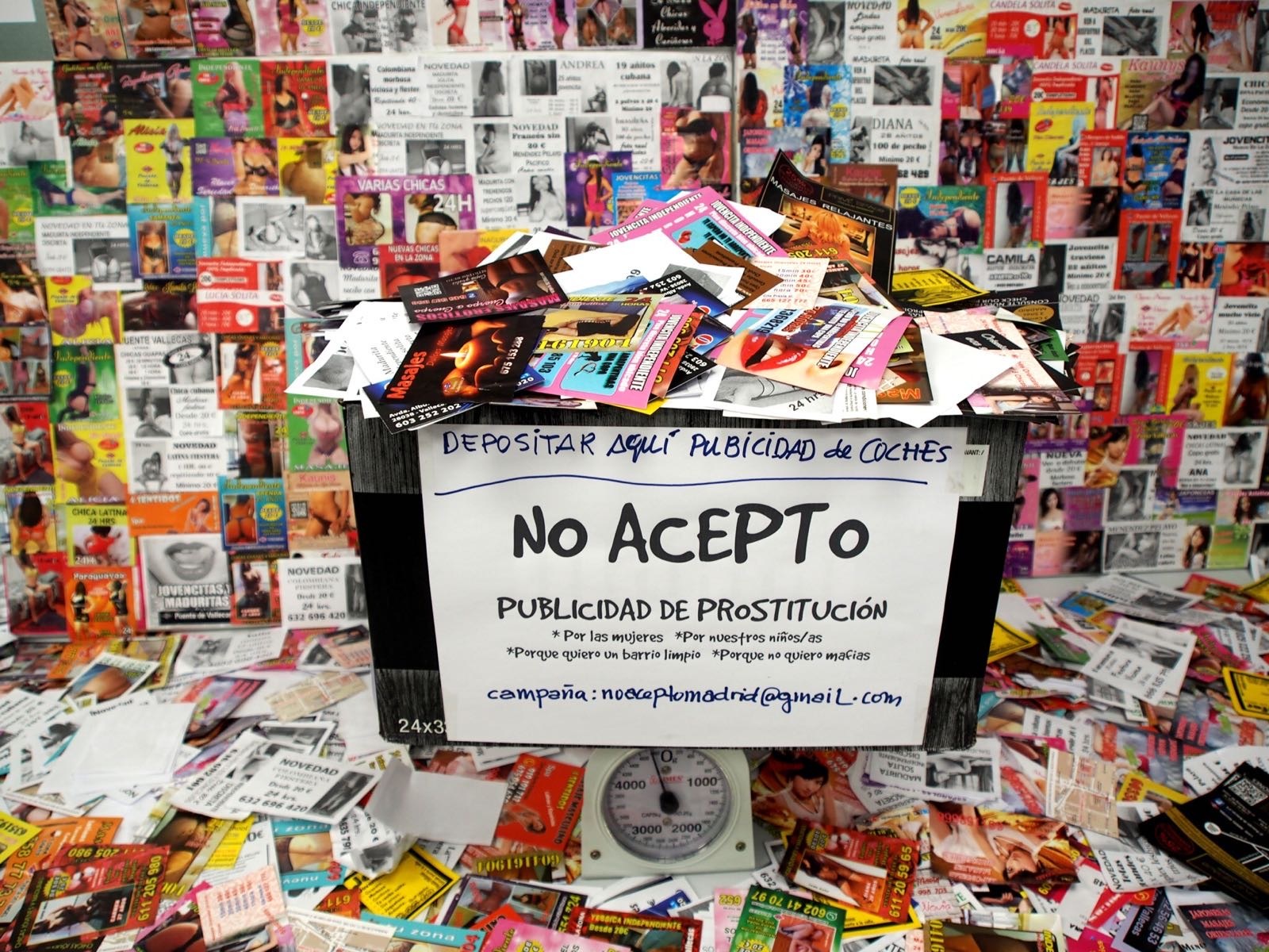 Hemos hablado con Ana Martínez, la presidente de la A.V de Quintana, para conocer en profundidad no solo el "No acepto", sino también los efectos de este tipo de publicidad y del negocio de la prostitución como tal. "En los coches, puedes quitar entre cuatro, seis y hasta quince papelitos de este tipo de propaganda sin esforzarte demasiado", nos traslada Ana cuando le preguntamos cuál es el estado actual del problema.