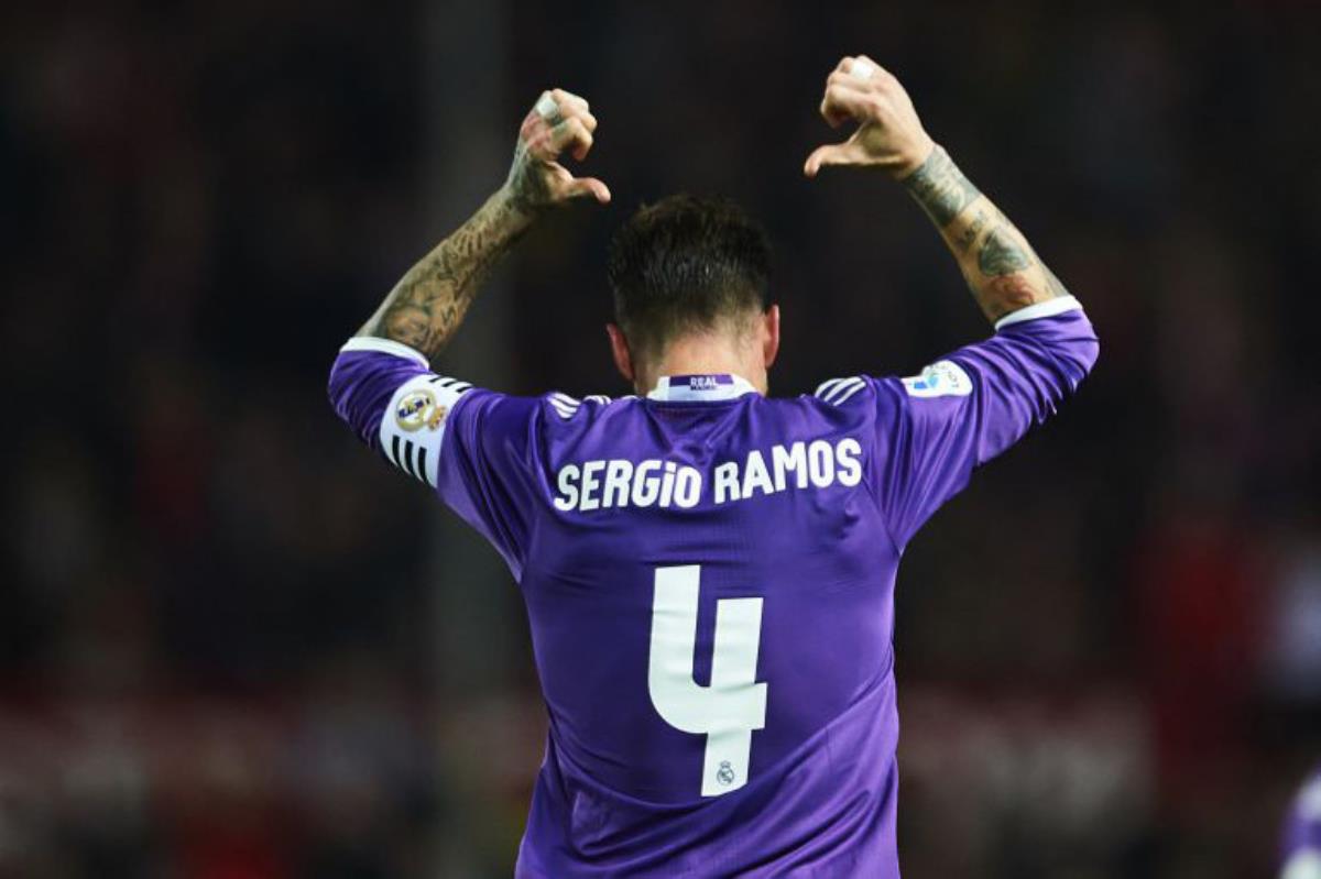 Sergio Ramos celebró de esta forma su gol al Sevilla.