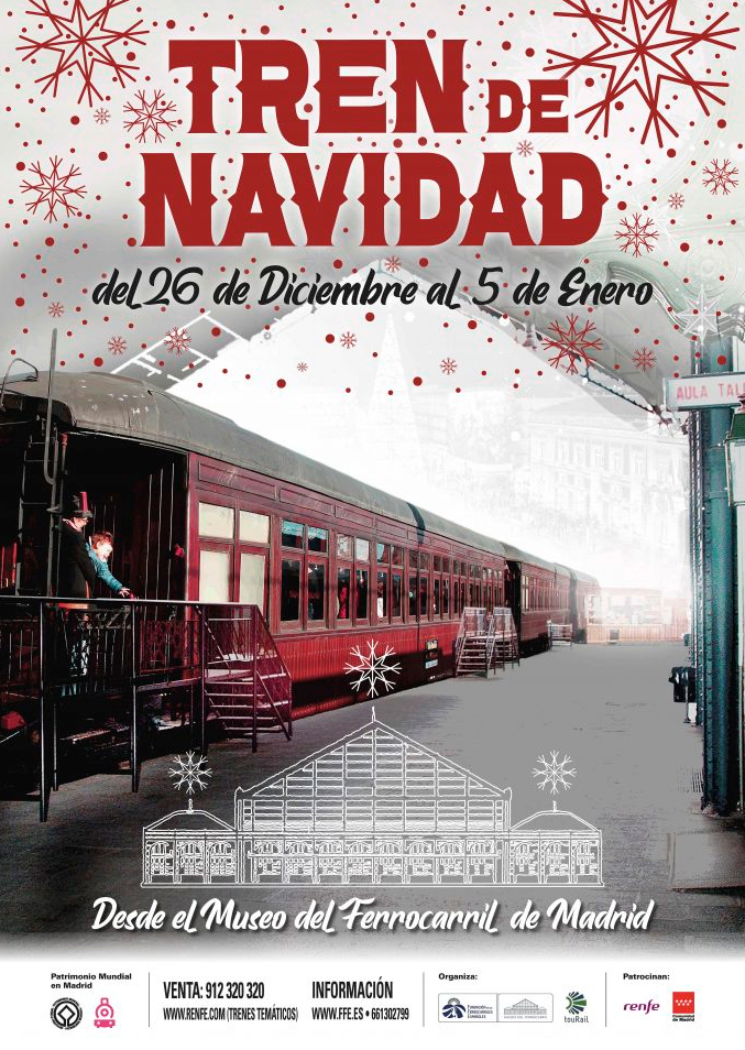 La ‘Fundación de los Ferrocarriles Españoles’ nos invita a un recorrido muy especial lleno de diversión y aventuras a bordo de su ‘Tren de Navidad’. Este año el tren está formado por una composición de dos coches 'Costa' de madera y otros dos coches restaurante, todos ellos de entre 1920 y 1930.