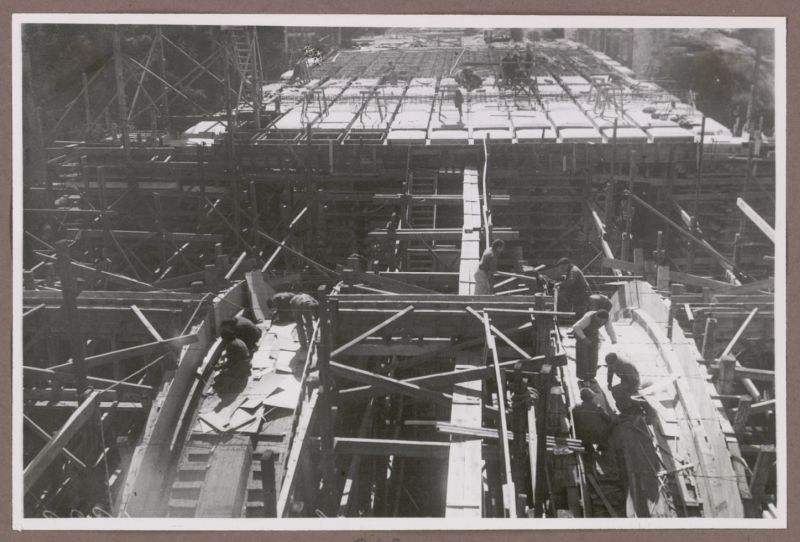 Derribado el deteriorado puente de hierro, en 1931 se convocó un concurso para su reconstrucción. El proyecto ganador, factura del arquitecto Francisco Javier Ferrero y de los ingenieros Luis Aldaz y José de Juan-Aracil, con el inconfundible sello racionalista de la época, se concluyó en 1934, realizado en hormigón pulido, con sillares de granito en los pilares.