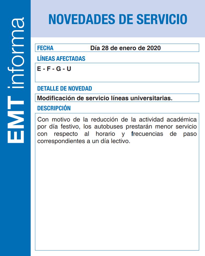 MADRID | EMT Madrid modifica el servicio de las líneas universitarias