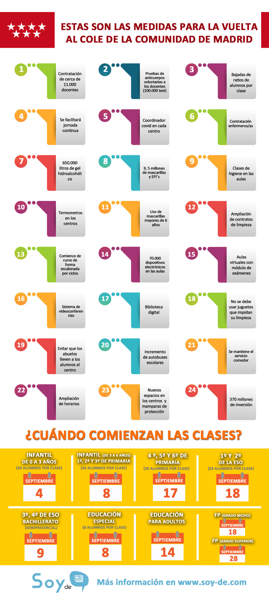 Una de las medidas de prevención que ha planteado la Comunidad de Madrid para garantizar un regreso seguro a las aulas es escalonar el inicio del curso por etapas educativas.