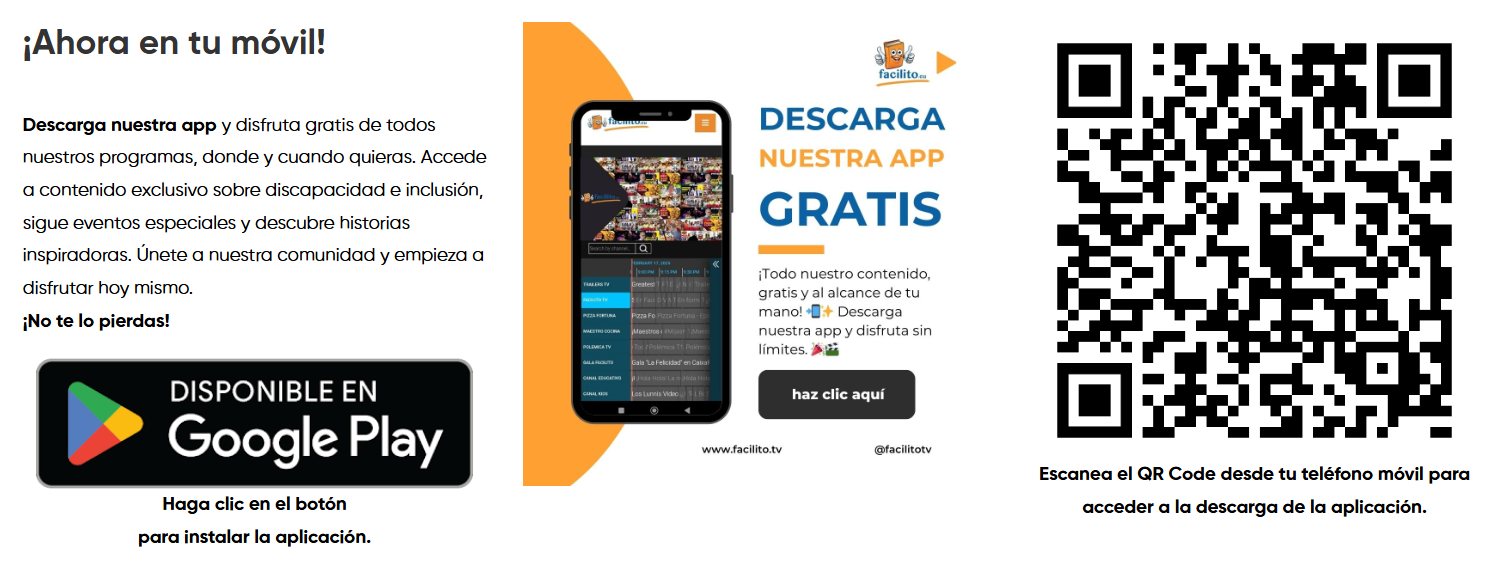 Sobre Facilito TV Facilito TV, es el canal de televisión dirigido a personas con discapacidad intelectual. A través de sus contenidos se fomenta la visibilidad, sensibilización y normalización de las personas con discapacidad intelectual en la sociedad en general, y entre sus principales objetivos está promover la dignidad de las personas con discapacidad intelectual. Todos los contenidos del canal son gratuitos y accesibles. Los programas se enfocan en educación, entretenimiento y diversión, con temáticas de interés para el colectivo de la discapacidad intelectual, con una participación activa y visible en los programas.