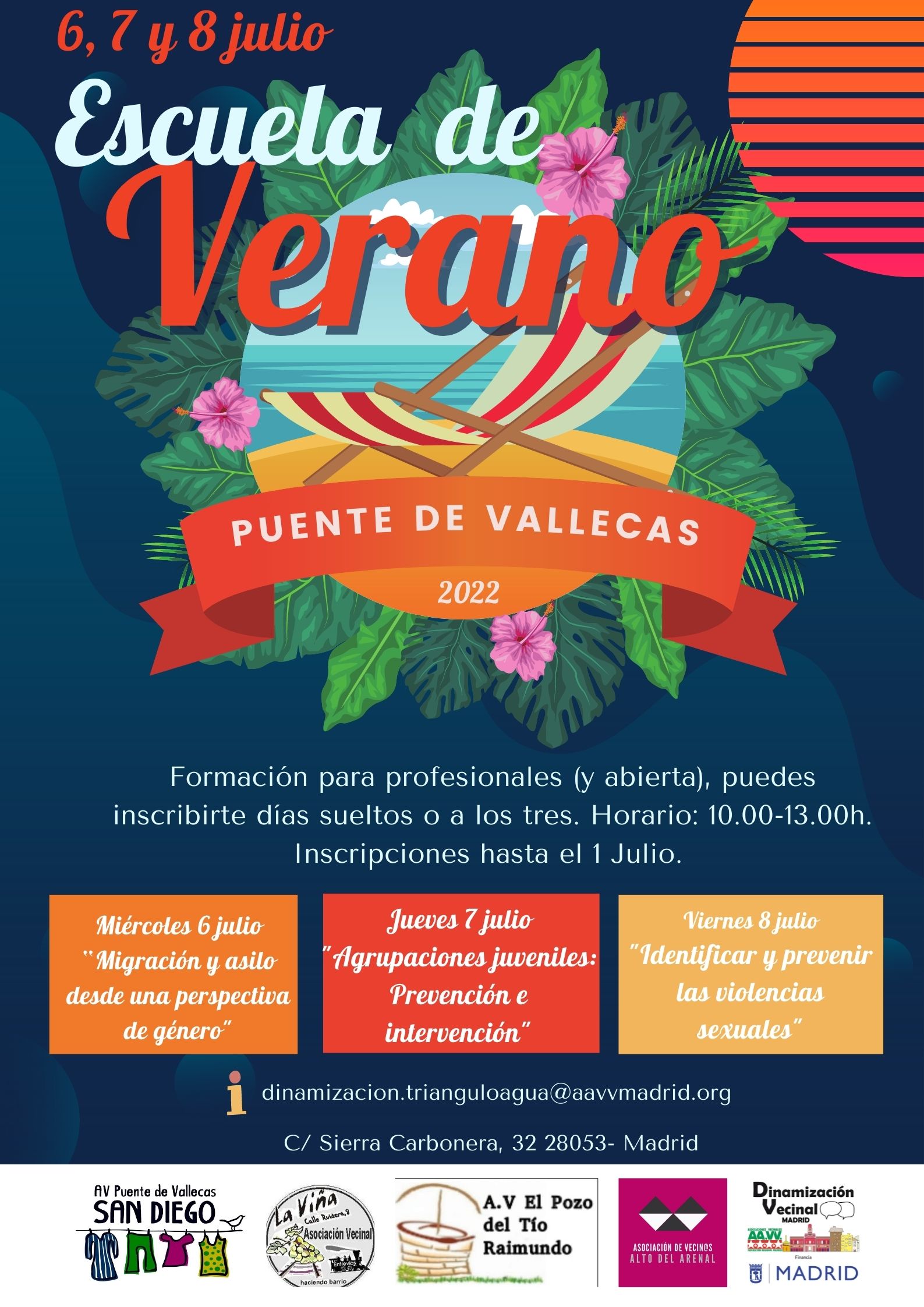 La III Edición de la Escuela de Verano tratará el 6 julio sobre “Migración y asilo desde una perspectiva de género”, el 7 de julio sobre “Bandas Juveniles: Prevención e intervención”, y el 8 de julio sobre “Identificar y prevenir las violencias sexuales”.