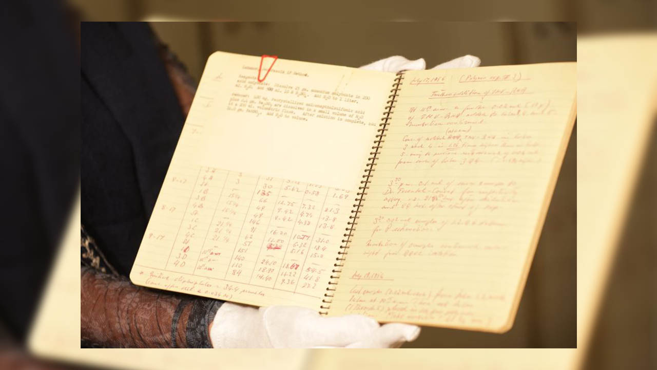 La Caja de las Letras del Instituto Cervantes ha recibido como legado in memoriam de Severo Ochoa un cuaderno de laboratorio de 1956. El cuaderno pertenece a la época en la que el bioquímico español trabajaba en la Universidad de Nueva York, y cuyas investigaciones le llevaron a ganar el Premio Nobel de Fisiología y Medicina en 1959.