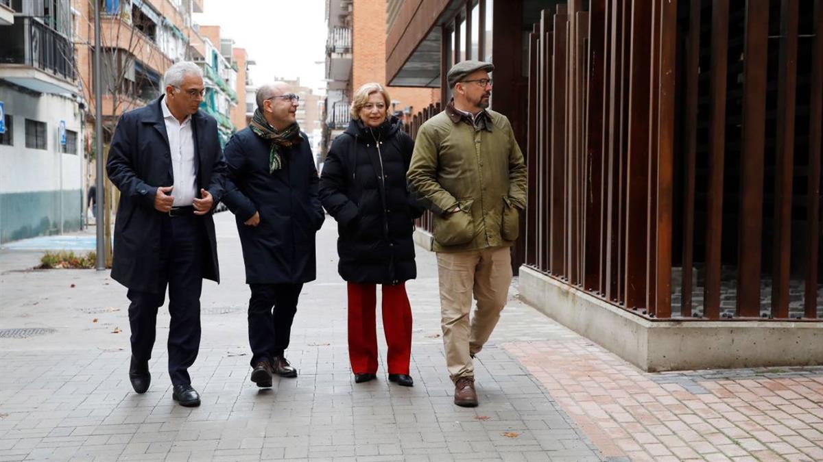 La delegada de Obras y Equipamientos, Paloma García Romero, y el delegado de Políticas Sociales, Familia e Igualdad, José Fernández, acompañados por el concejal de Carabanchel, Carlos Izquierdo, han visitado el entorno del Centro de Mayores y de Día San Vicente de Paúl, que acaba de ser objeto de trabajos de remodelación en el marco del programa de mejora de accesos a centros de mayores y de día puesto en marcha por el Ayuntamiento para garantizar la accesibilidad y hacer de estos entornos unos espacios más amables para sus usuarios.