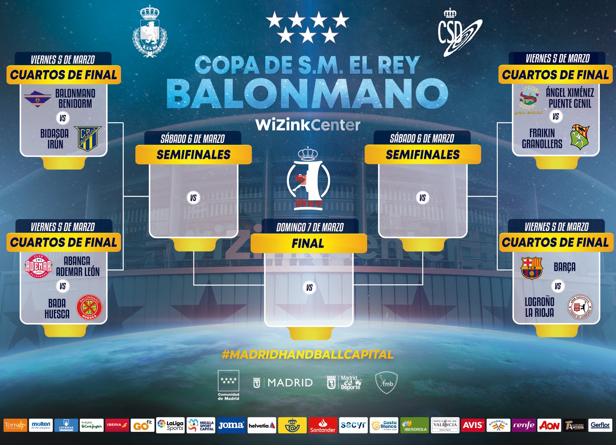 Este jueves 18 de febrero se ha celebrado, en el Palacio de los Deportes, el sorteo de la Copa del Rey de Balonmano que se disputará del 5 al 7 de marzo. Es la tercera vez en los últimos cuatro años que tendrá lugar en Madrid con el modelo de ocho equipos y una eliminatoria directa. En 2018 fue en el Madrid Arena, en 2020 en La Caja Mágica, mientras que este año, en 2021, el WiZink Center será testigo de dicha competición. Las dos primeras las ganó el Barça y apunta como el gran favorito para este año.