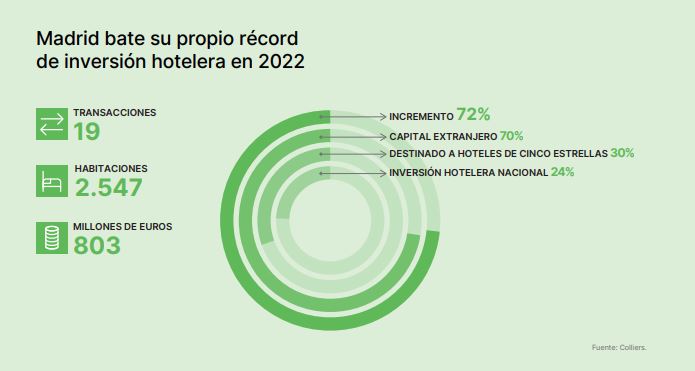Madrid se consolidó en 2022 como el destino urbano más atractivo para inversores hoteleros, que destinaron 803 millones de euros a la compra de hoteles.