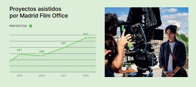 Las calles de la ciudad acogieron en 2022 un total de 860 rodajes, entre los que destacaron 66 series de televisión, 47 películas de ficción y 380 anuncios, según datos de Madrid Film Office.