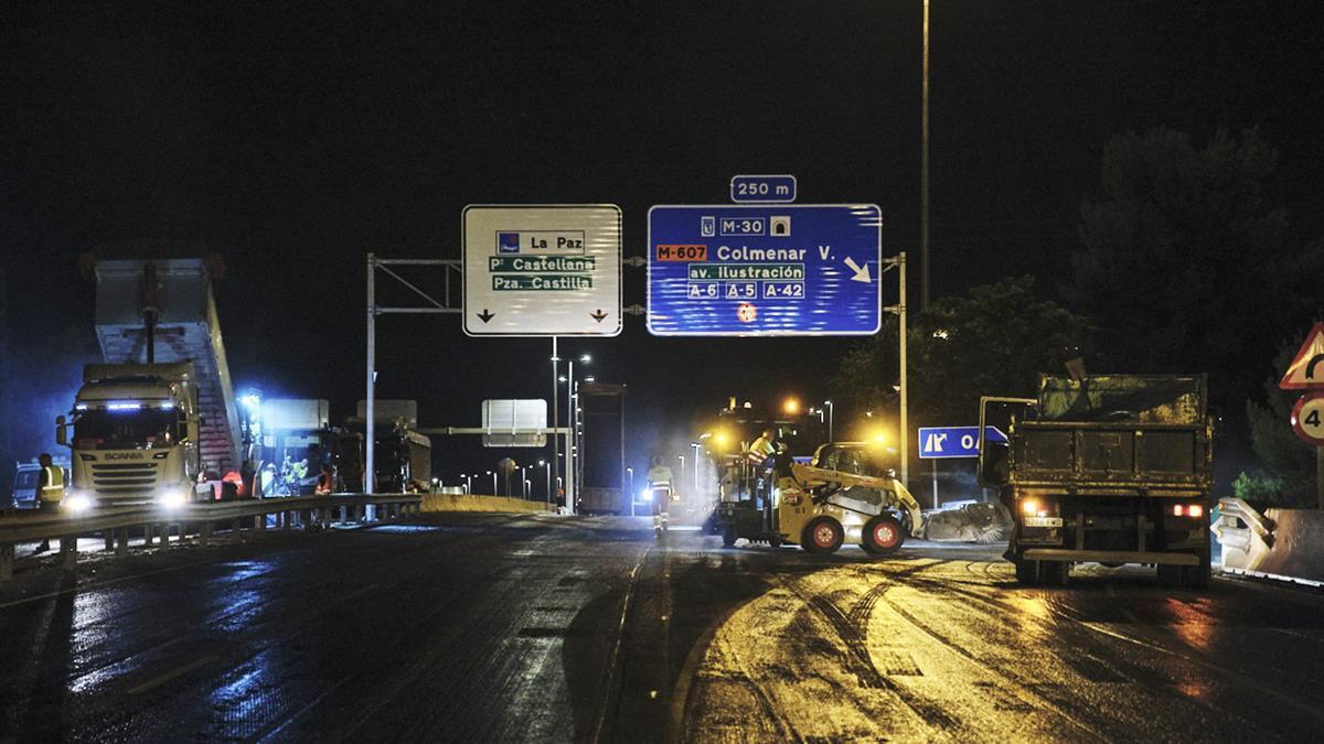 Esta intervención, que ha consistido en un proyecto integral de renovación vial sobre una superficie de 100.000 metros cuadrados, contando con una inversión de tres millones de euros, se ha realizado desde la glorieta de Mariano Salvador Maella hasta la intersección con la A-6, con intervenciones en los sectores de los nudos de la M-607, M-11 y M-23, en sentido de salida de Madrid.
