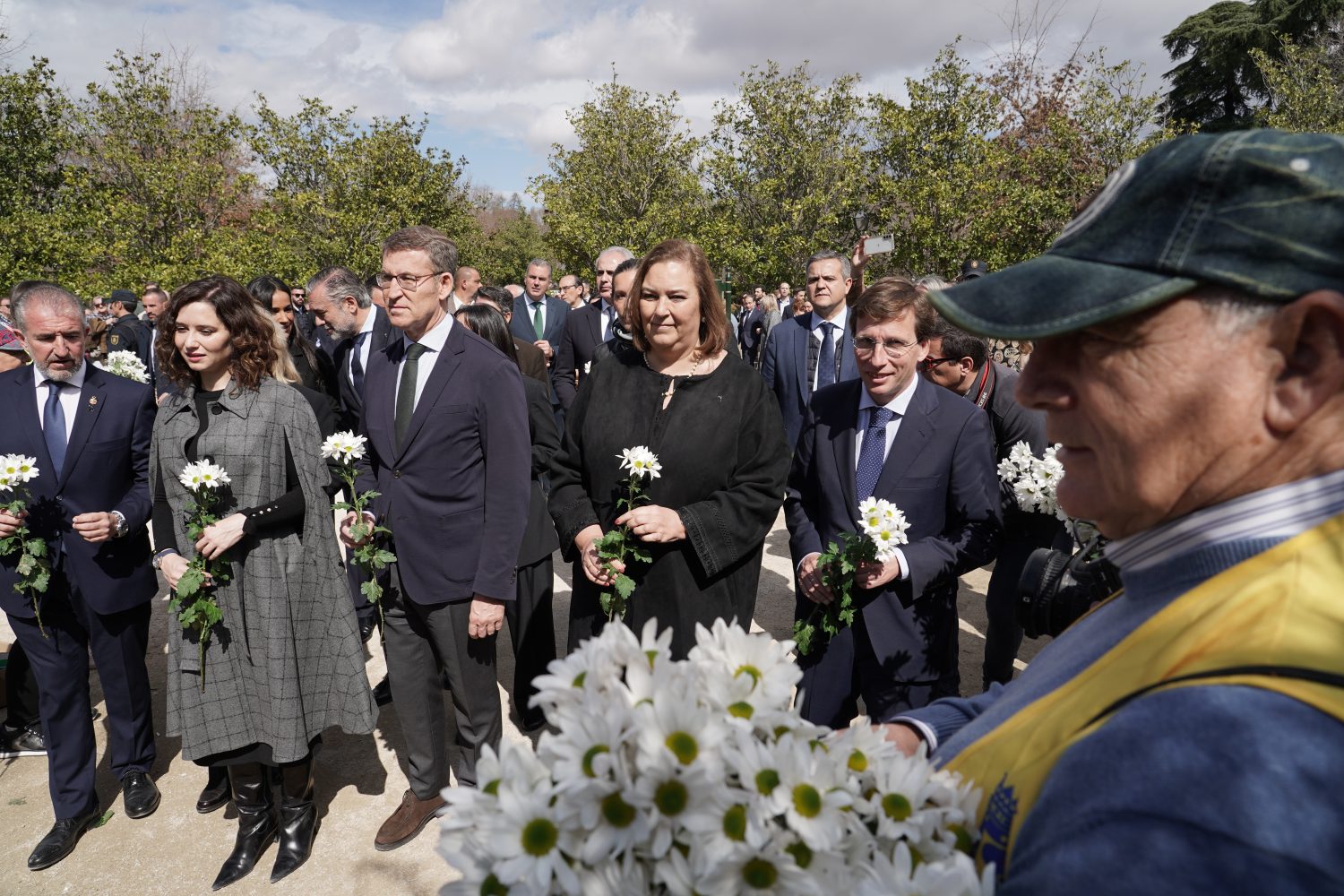 Tras un minuto de silencio encabezado por la presidenta de la AVT, Maite Araluce, y la presidenta de honor de la AVT, Ángeles Pedraza, ha tenido lugar una suelta de globos blancos en memoria de las víctimas. Posteriormente, alcalde y vicealcaldesa, junto al resto de autoridades, han realizado una ofrenda floral en el Bosque del Recuerdo.