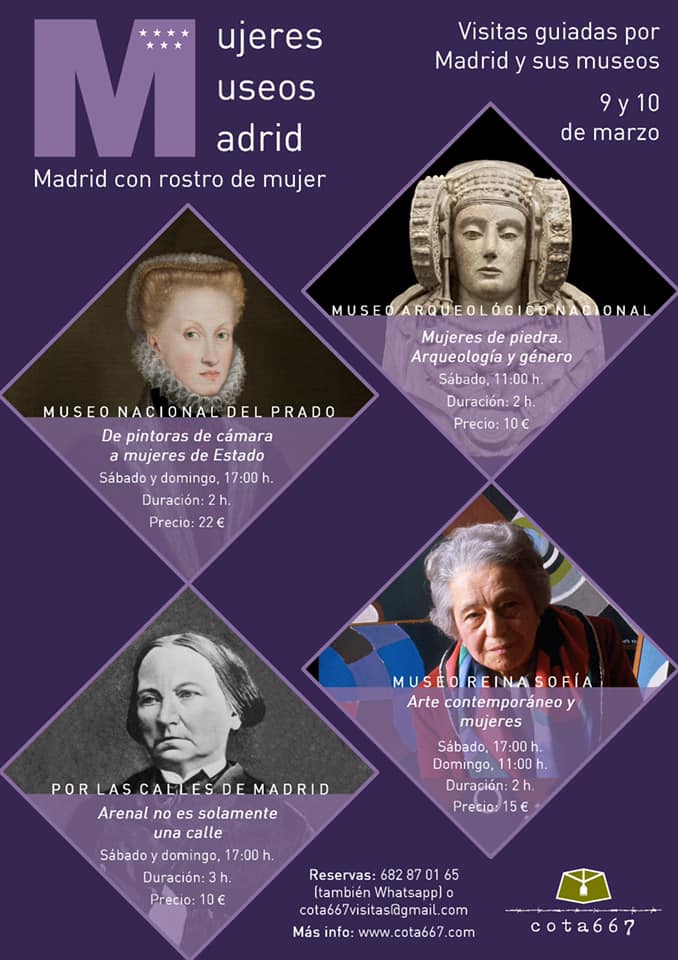 Están proyectadas cuatro visitas guiadas, encabezadas por arqueólogos, historiadores e historiadores del arte, que durante estos dos días nos muestren algunas calles y museos más emblemáticos de Madrid desde una perspectiva de género. En concreto, las visitas son las siguientes: