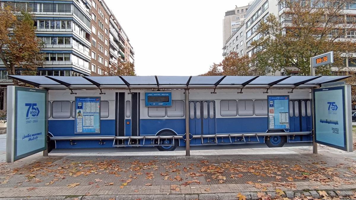 La Empresa Municipal de Transportes de Madrid (EMT), dentro de las numerosas acciones conmemorativas organizadas este año por su 75 Aniversario, ha transformado cinco marquesinas de Madrid en autobuses históricos y legendarios de los que un día recorrieran las calles de la capital, quedando para siempre en el recuerdo de los viajeros. Los cinco nodos de parada han sido especialmente elegidos por ser emplazamientos muy céntricos y con mucha afluencia de público.