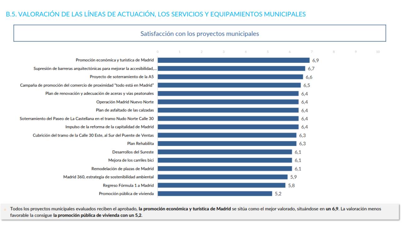 ¿Sabes qué valoración hacen los madrileños del regreso de la Fórmula 1 a Madrid? Es el segundo proyecto municipal, pero valorado de la Encuesta de Calidad de Vida, con unos 5,8 puntos”, añade Maroto. De hecho, afirma que “no parece ser una prioridad para la mayoría de los madrileños”, quienes piden otros proyectos como Plan de Acera, víales peatonales o asfaltado de calles.