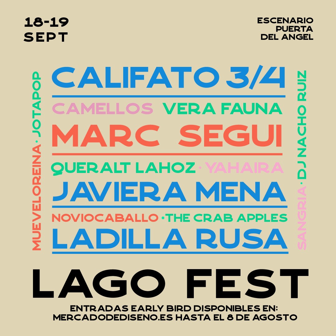 ¡Mira qué cartelazo te trae Lago Festival! Desde Califato ¾ hasta Ladilla Rusa, Marc Seguí o el potente directo de Mueveloreina. ¡Te costará quedarte en tu sitio! Por eso tienes que informar cuanto antes a tu grupo de amigos y pillar las entradas para Lago Festival. ¿Qué mejor ‘vuelta al cole’ que con un festival? Importante: entradas early bird desde 45€ todo el fin de semana solo hasta el 8 de agosto.