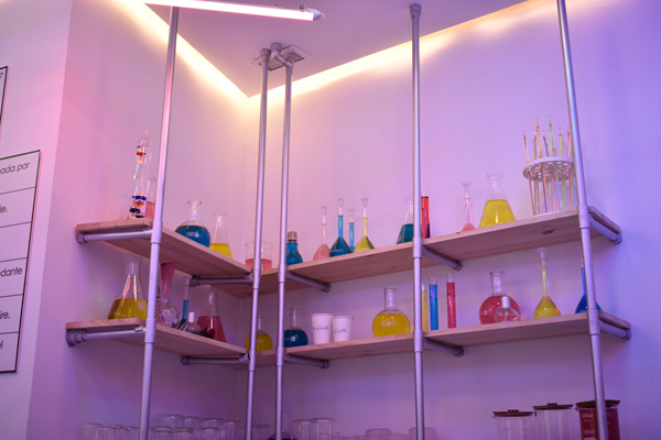 A nuestra llegada a N2 Lab, poco tiempo después de su hora habitual de apertura (13:00 h), nos reciben Marta, Vicente y Abel. Los tres valientes que se han embarcado en esta aventura de sabores.