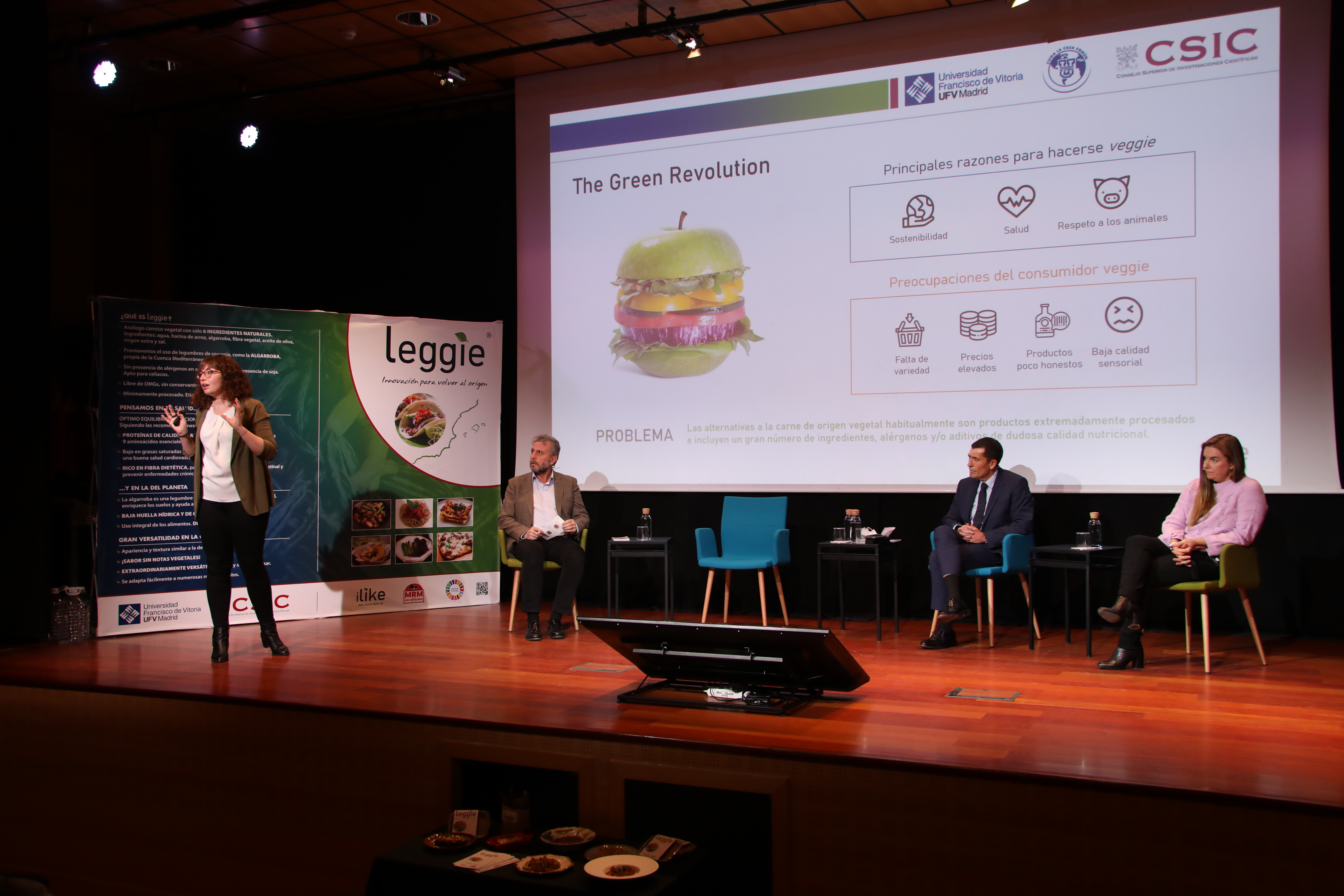La Universidad Francisco de Vitoria (UFV) ha acogido la presentación de Leggie, un novedoso análogo cárnico producido a partir de algarroba, cuyo aspecto y textura son similares a los de la carne, pero más saludable, con proteínas de alta calidad, bajo en grasas saturadas y sin colesterol, además de ser especialmente rico en fibra dietética. Este producto es el resultado de un proyecto de investigación en Ciencias de la Alimentación liderado por la Dra. Marta Garcés Rimón de la Universidad Francisco de Vitoria y la Dra. Marta Miguel Castro del CSIC, transferido al mercado a través de la creación de la spin-off I Like Food Innovation, y cuya licencia de comercialización la tiene la empresa madrileña MRM.