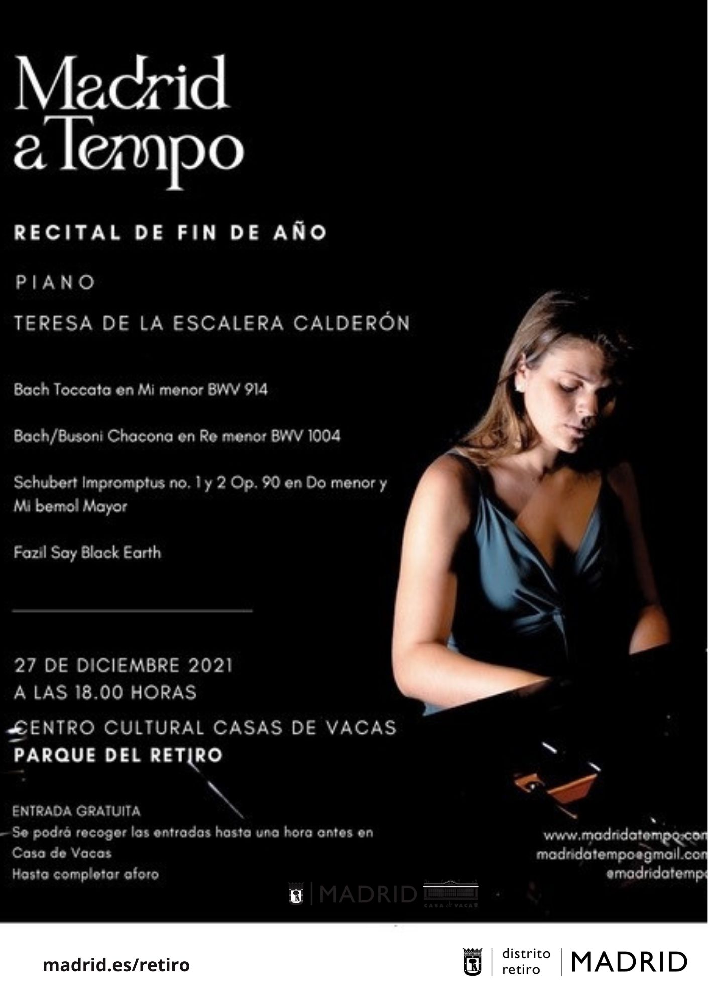El Centro Cultural Casa de Vacas acoge a partir de este lunes, 27 de diciembre, y durante los primeros domingos de cada mes de 2022, de 12:00 a 13:00 horas, el primer ciclo de música de jóvenes artistas emergentes promovido por la Asociación Cultural A Tempo. El acuerdo entre la Junta Municipal de Retiro y la asociación tiene como objetivo ofrecer espacios a jóvenes artistas emergentes en los que puedan compartir públicamente su repertorio e inspiración y, a su vez, promover, fomentar y divulgar el acceso a la escena cultural de estos jóvenes músicos.