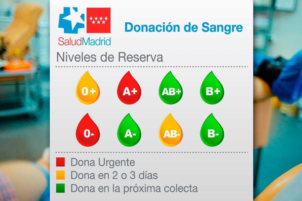 El Centro de Transfusión de Madrid comunica que los grupos 0- y A+ se encuentran en alerta roja y no mejoran