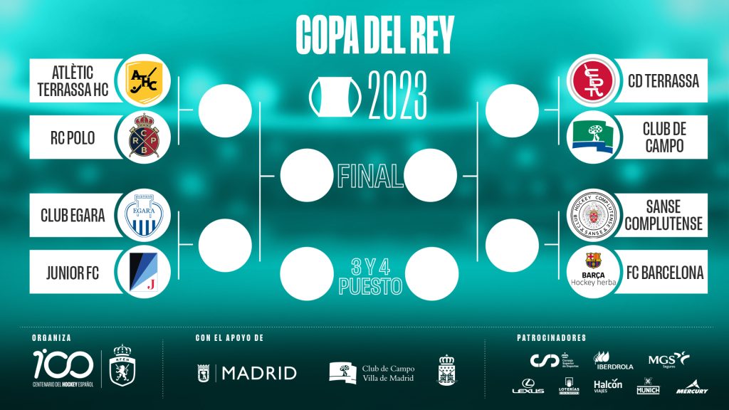Hoy, ha tenido lugar el sorteo de la 106ª Copa del Rey y 38ª Copa de la Reina Iberdrola de hockey hierba. Los ocho mejores equipos de la primera vuelta de las ligas MGS e Iberdrola, se enfrentaran entre ellos, del 24 al 26 de marzo, en el Club de Campo Villa de Madrid.