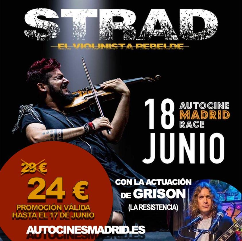 STRAD ofrece un espectáculo único y sin complejos para hacer vibrar al público a través de la música. En este caso, el próximo 18 de junio a las 21:30 horas llega en directo a Autocines Madrid RACE el espectáculo protagonizado por STRAD, ’El Violinista Rebelde’ y Grison, campeón mundial de Beatbox, conocido también por formar parte del equipo de La Resistencia.