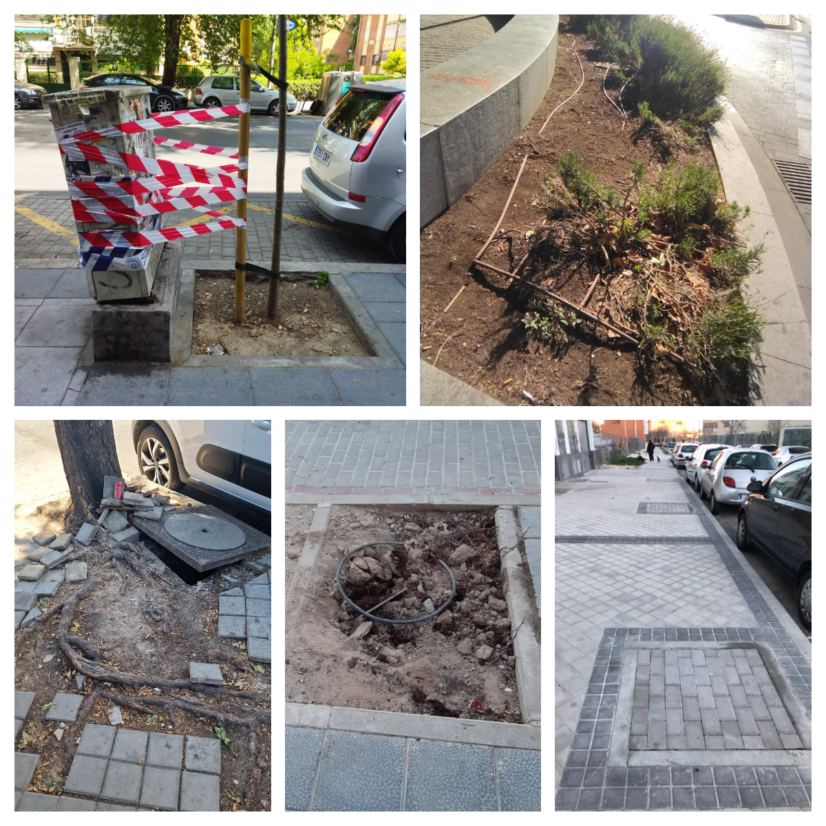 Desde la A.V Valle Inclán de Prosperidad nos amplían un poco más sobre la cuestión y afirman el estado de "descuido" en cuanto al "mantenimiento de las zonas peatonales y aceras (en las calles estrechas no pueden circular los peatones), arbolado, bolardos, aparatos de rehabilitación para mayores en los parques, escasez de fuentes y bancos…".
