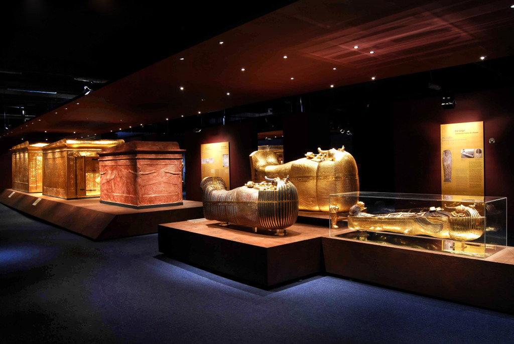 Compuesta por un total de 1.000 réplicas a tamaño real, elaboradas por artesanos expertos (algunas de ellas, incluso, bañadas en oro), la exposición recrea la antecámara, la cámara del tesoro y la cámara funeraria. Una reconstrucción de 2.000 metros cuadrados de superficie que ha sido posible gracias a las fotografías que hizo Burton, el fotógrafo de la exposición.
