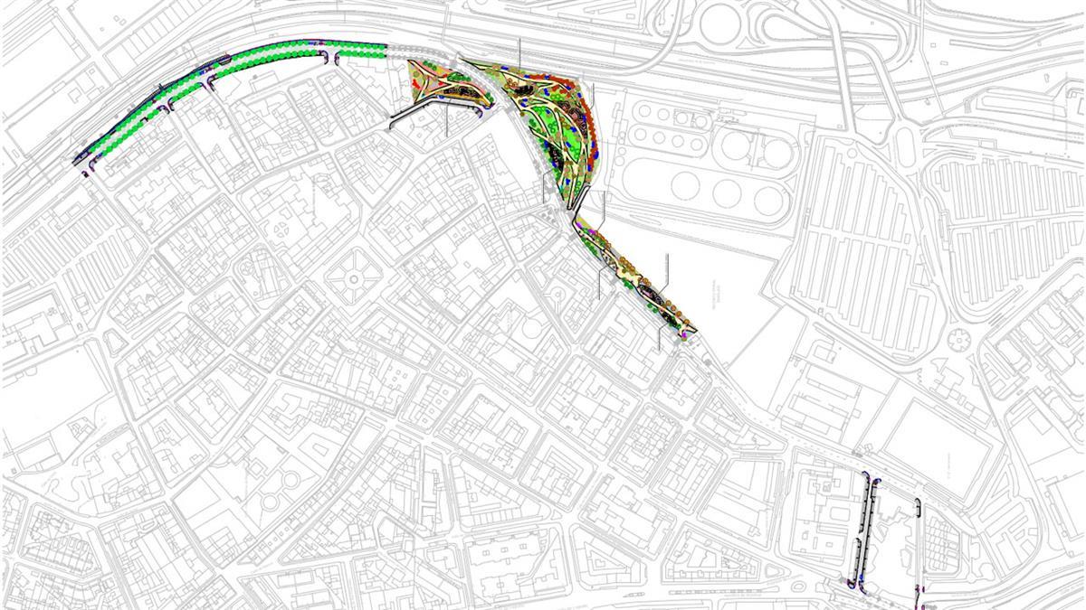 La actuación se complementa con la urbanización de las zonas verdes situadas entre la calle Ayerbe y la avenida de la Hispanidad mediante la construcción de dos zonas de juegos para niños, una zona de juegos para distintas edades y otra de toboganes, una zona de ejercicio físico, dos zonas de mesas de juegos y una zona de mayores.
