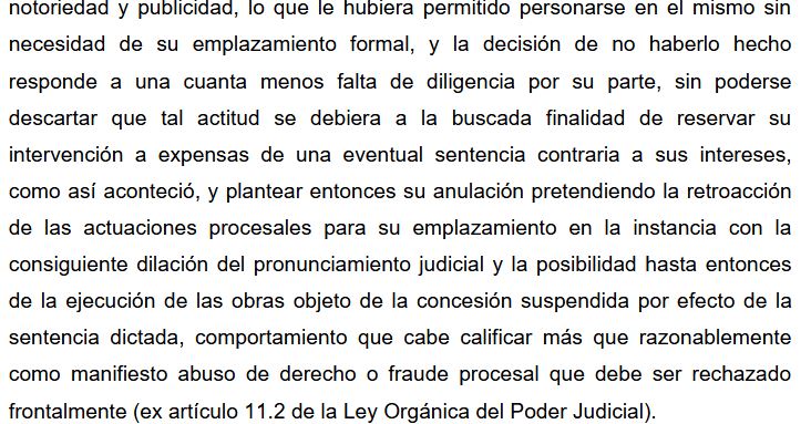 Además, parece que el Real Madrid, parte implicada y posiblemente perjudicada, está intentando meter la patita. El Club de Fútbol asegura que debió ser emplazado como interesado en el procedimiento por ser promotor de la iniciativa, y considera que esta falta vulneraría su derecho a una tutela judicial efectiva, y le genera indefensión. Una postura que también rechazó la asociación, asegurando que el club sí era conocedor del proceso judicial en curso, tampoco está directamente afectado, ya que no concurrió al concurso de licitación de manera directa, sino a través de, al parecer, sociedades vinculadas con el Real Madrid. Todo lo expuesto por los vecinos ha sido avalado por el TSJM.