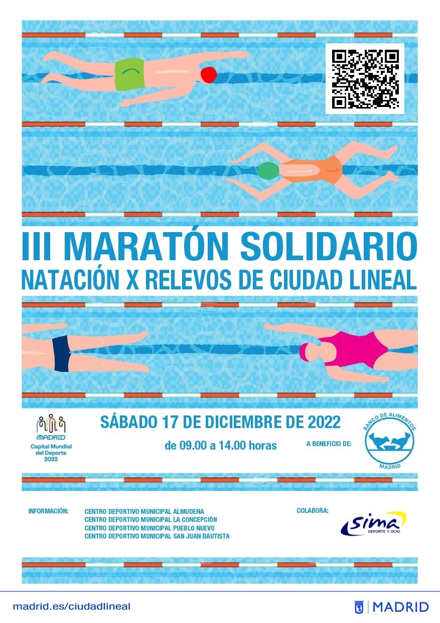 La Maratón de Natación por relevos, regresa a Ciudad Lineal. Consolidada como una de las citas deportivas de carácter solidario más importantes del distrito, la tercera edición tendrá lugar el próximo sábado, 17 de diciembre. El lugar donde se celebrará esta cita solidaria, serán las piscinas cubiertas de los centros municipales La Almudena, Concepción y San Juan Bautista. Los interesados en participar pueden obtener información en los mismos centros deportivos o a través del correo electrónico gabineteclineal@madrid.es.