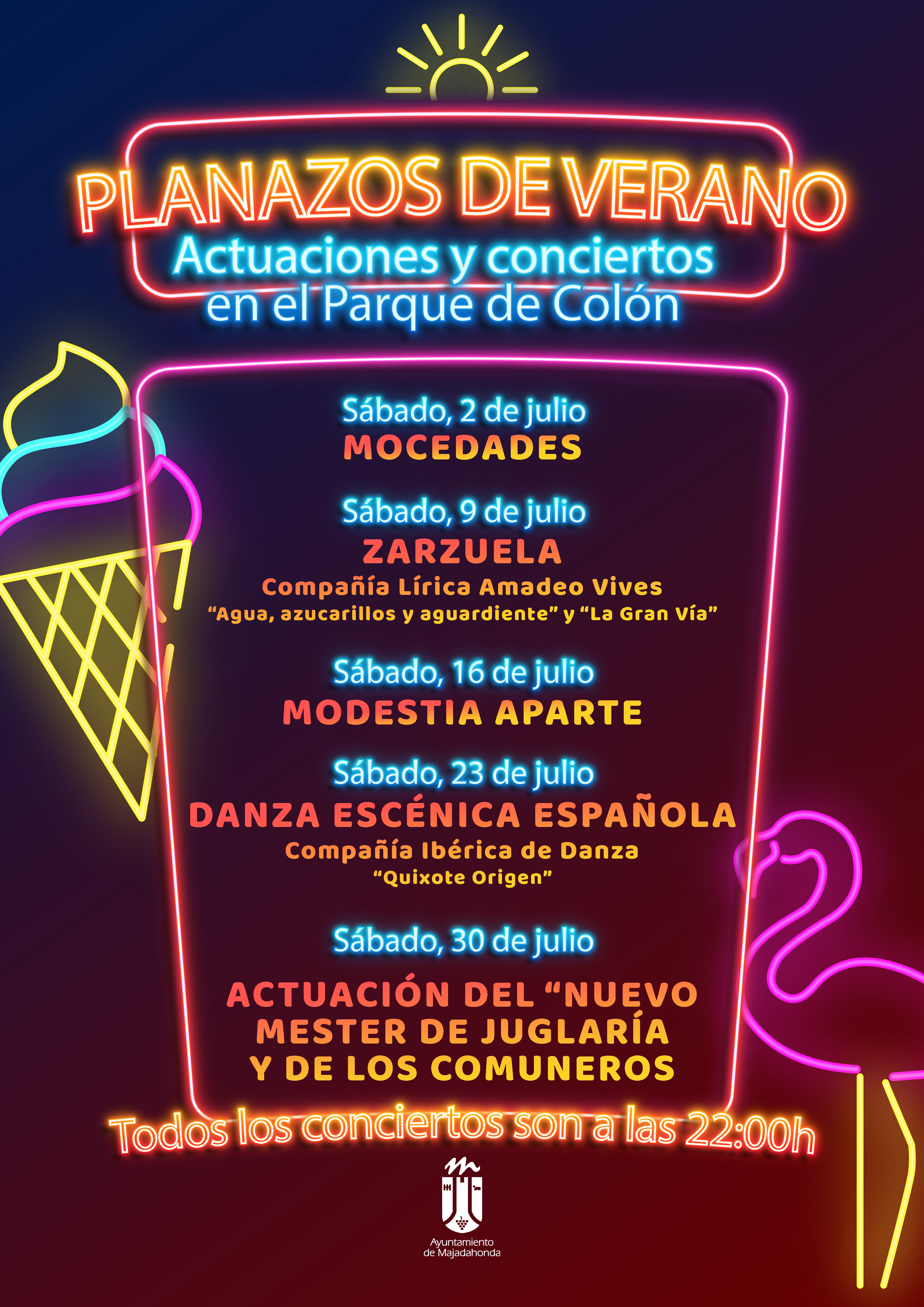 Majadahonda ha preparado por primera vez distintos conciertos y actuaciones de acceso libre para el mes de julio. Estos ‘Planazos de verano’ tendrán lugar en el Parque de Colón cada sábado a las 22:00 horas.