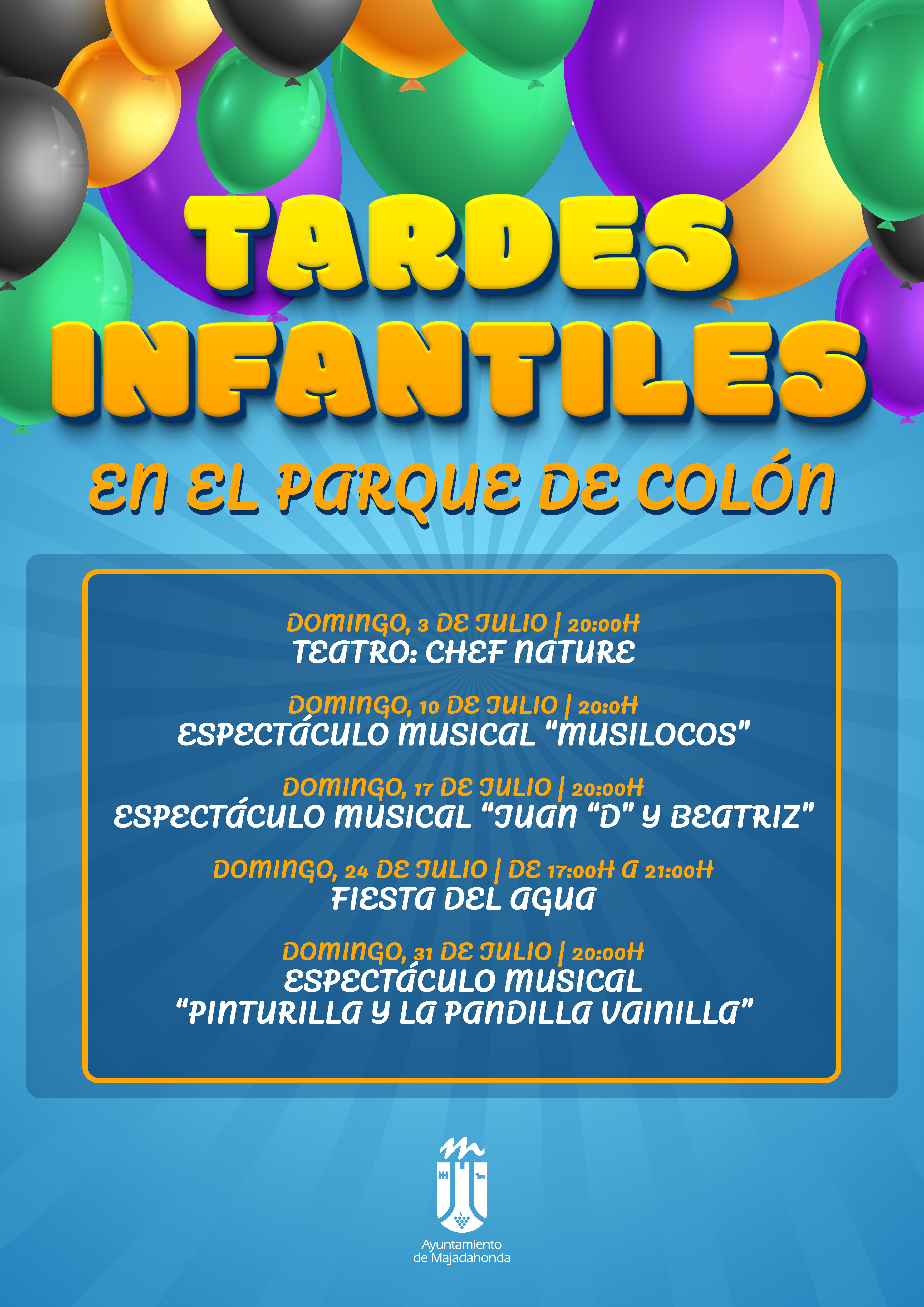 Además de estos ‘Planazos de Verano’ en forma de conciertos y actuaciones, Majadahonda ha organizado actividades infantiles para todos los domingos de julio, que tendrán lugar a las 20:00 horas. Así, el Parque de Colón será escenario de obras de teatro infantil, espectáculos musicales y hasta una ‘fiesta del agua’