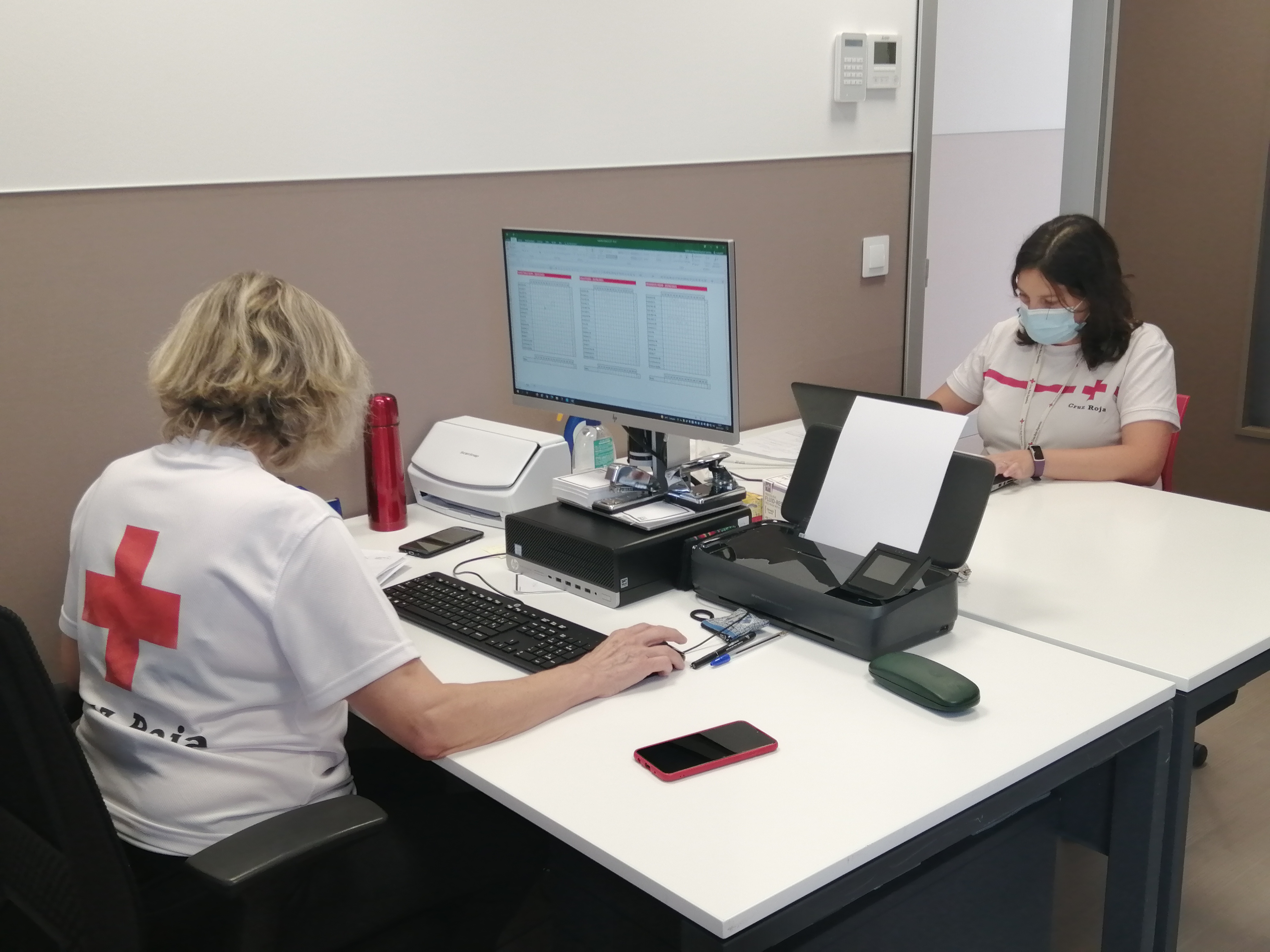 Por otro lado, encontramos a Luis. Él es voluntario de Cruz Roja desde hace más de 6 años. Su principal trabajo es valorar a las personas que vienen por primera vez pasando previamente por la acogida. Luís nos explica que dicha valoración “Consiste en hacerle una serie de preguntas personales y a continuación realizó el informe para llevárselo a la trabajadora social que será quien decida si se le dará o no la ayuda que ha solicitado y yo he propuesto”.