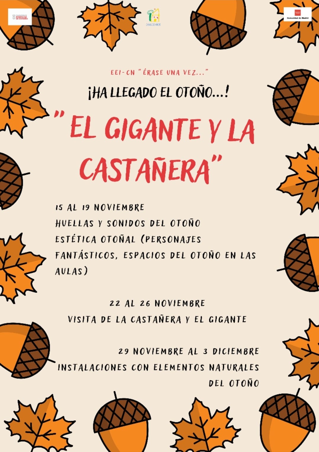 El cuento de El gigante y la castañera será la imagen de esta celebración, que ha tenido inicio este 15 de noviembre con una acción de huellas y sonidos del otoño a través de personajes fantásticos y espacios de esta estética en las aulas.