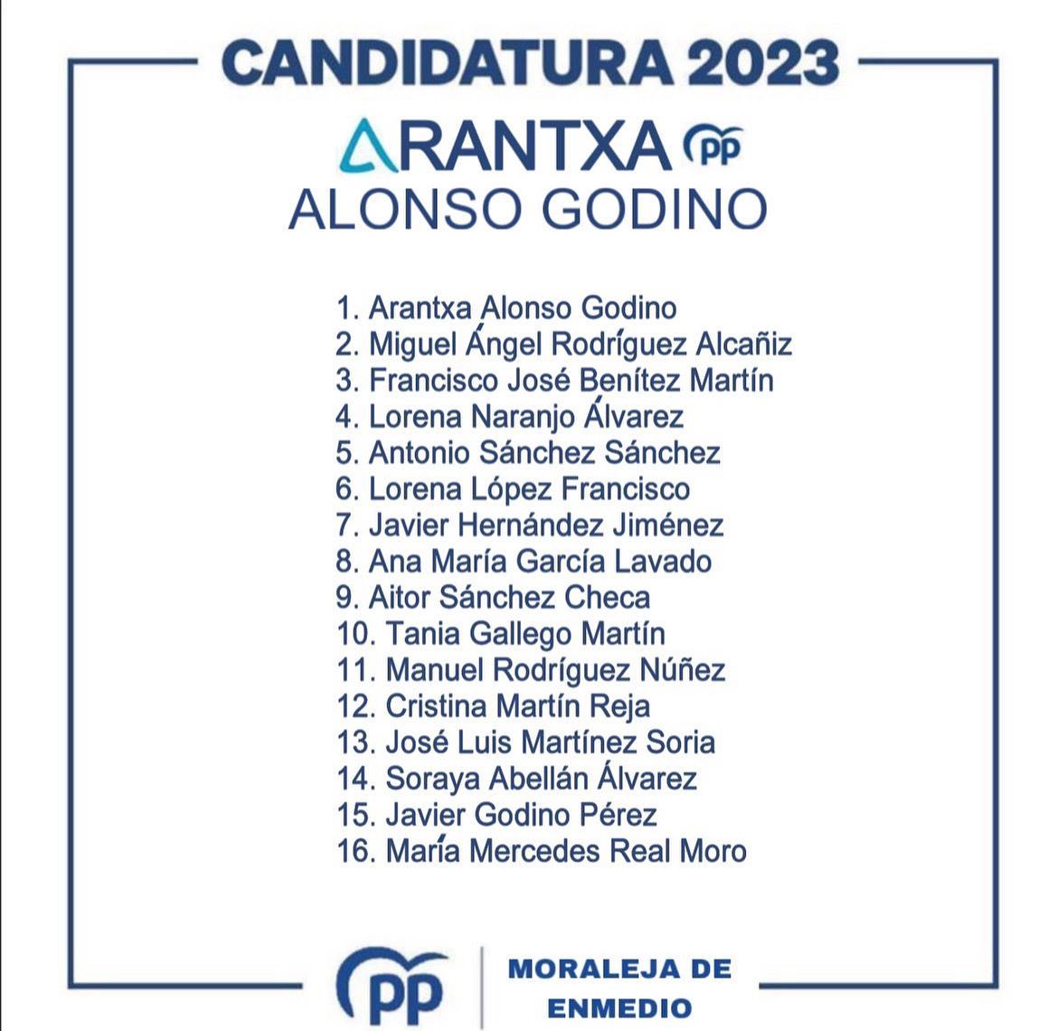 El Partido Popular de Moraleja de Enmedio se complace en presentar su candidatura a las elecciones municipales 2023. El equipo liderado por Arantxa Alonso se muestra como un equipo versátil, compuesto por personas que "compartimos la pasión por las cosas bien hechas, y que a su vez, nos comprometemos a ofrecer a todos los vecinos de nuestro municipio una mejor gestión, al servicio de todos".