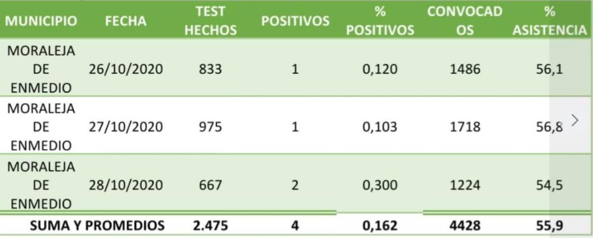 MORALEJA DE ENMEDIO | Estos son resultados de los test covid en Moraleja