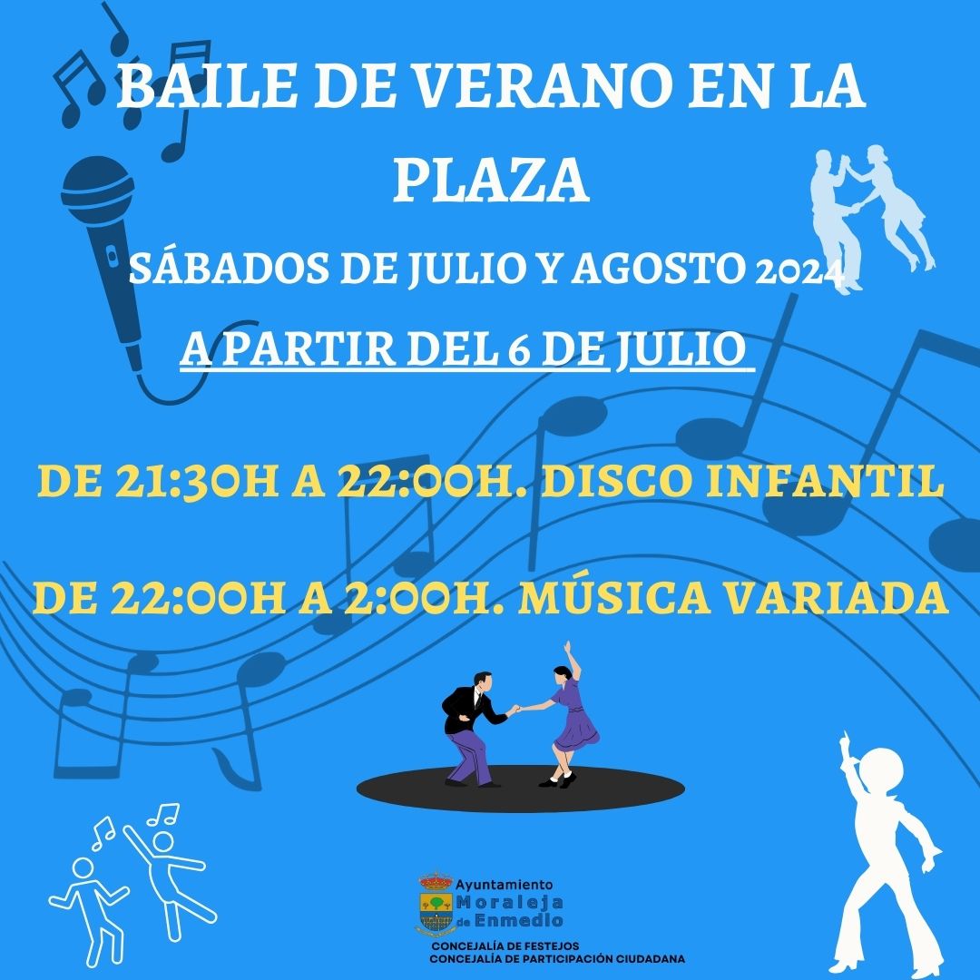 Todos los sábados de julio y agosto, los moralejeños que lo deseen tienen una cita desde las 21:30 en la Plaza de España. La música comenzará a esa hora con la Disco Infantil, que se extenderá hasta las 22:00. Una vez finalice, desde las 22:00 hasta las 02:00 horas habrá música variada para el deleite de todos los vecinos que quieran acudir.