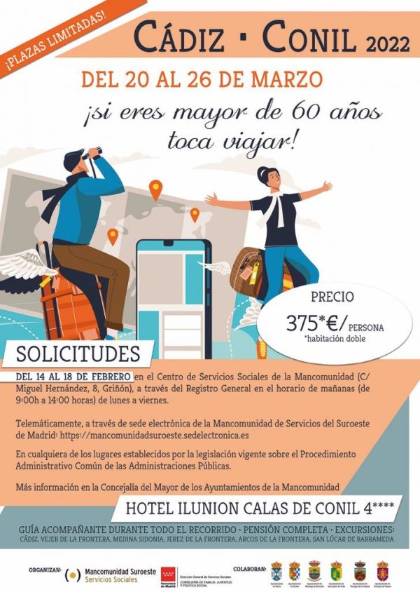 Se desarrollará el lugar 20 al 26 de marzo en el HOTEL ILUNION CALAS DE CONIL 4****. Así que, ya sabes, si eres mayor de 60 años... ¡te toca viajar! Las inscripciones ya están abiertas y hay tres maneras de formalizarlas: